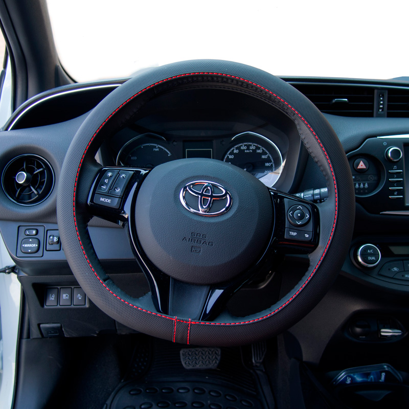 Simoni Racing Stuurwielhoes Soft Skin (elastisch) - 37-39cm - Zwart + Rode Stiksels - Zwart - Elastisch / Flexibel - Easy-fit - Anti-slip - Zacht en comfortabel