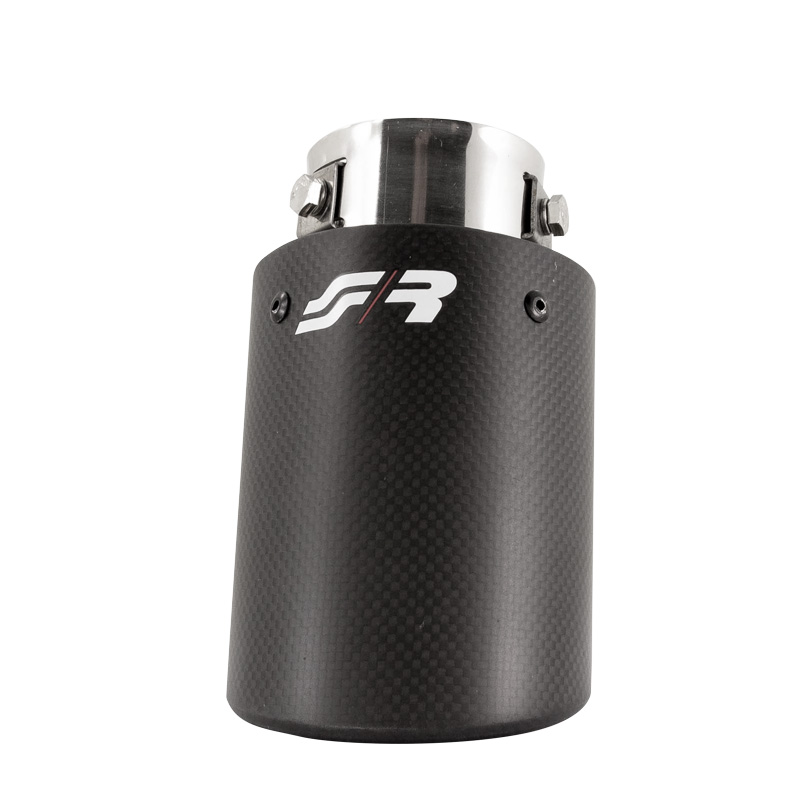 Simoni Racing Uitlaatsierstuk Rond/Schuin Mat-Carbon+RVS - Ø89xL155mm - Montage 36-60mm