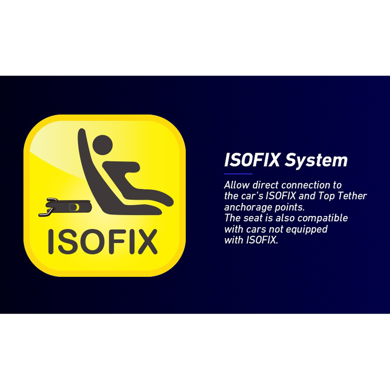 - Isofix-systeem: Sluit het systeem rechtstreeks aan op de ISOFIX- en Top Tether-verankeringspunten van de auto. Het zitje is ook compatibel met auto's die niet met Isofix zijn uitgerust.