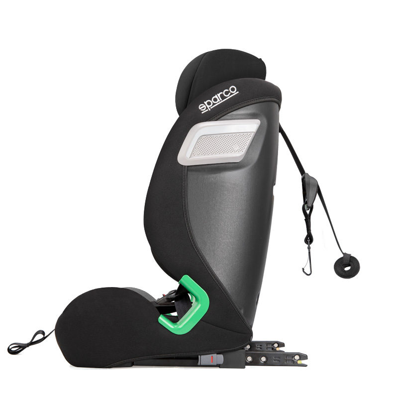 - Isofix-systeem: Sluit het systeem rechtstreeks aan op de ISOFIX- en Top Tether-verankeringspunten van de auto. Het zitje is ook compatibel met auto's die niet met Isofix zijn uitgerust.