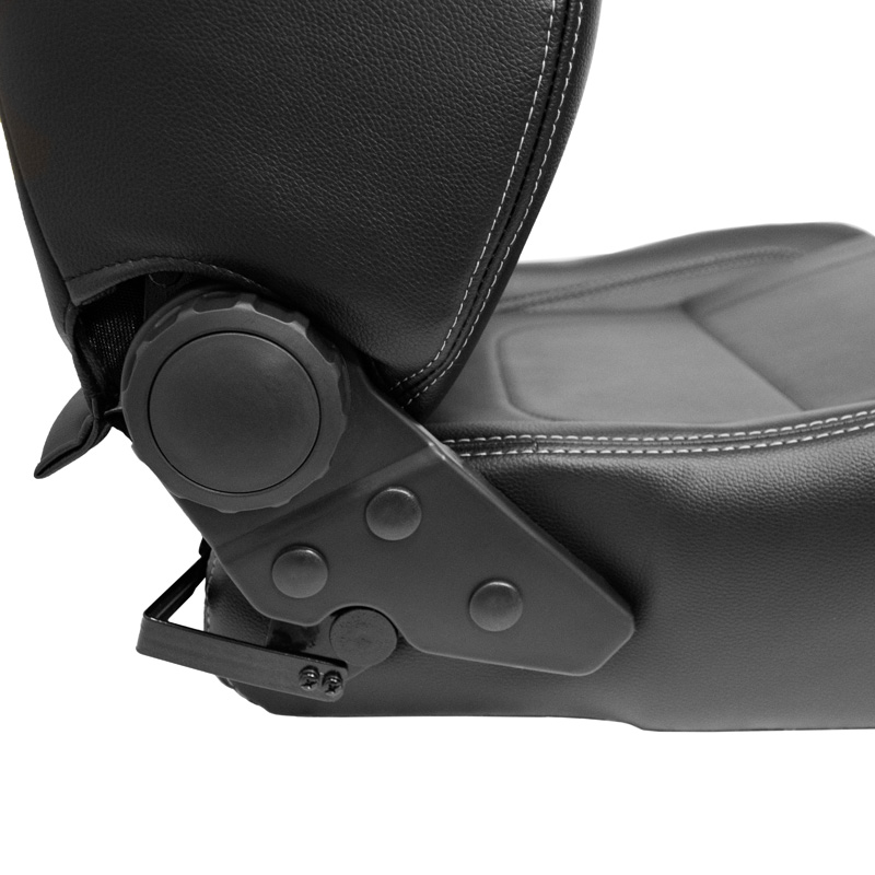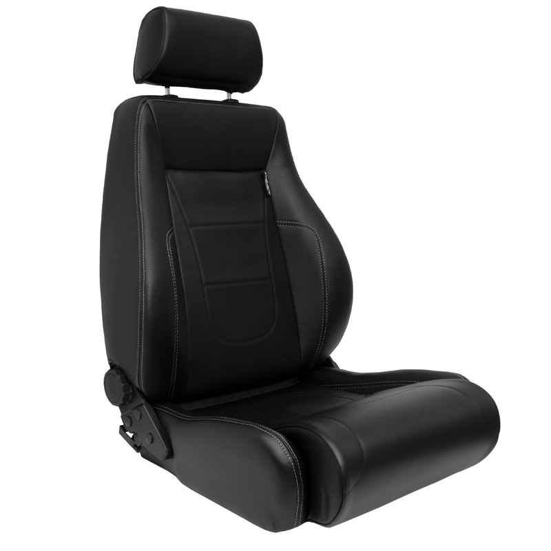 Sportstoel 'Retro II' - Zwart Kunstleder + Zilveren stiksels - Dubbelzijdig verstelbare rugleuning - incl. sledes