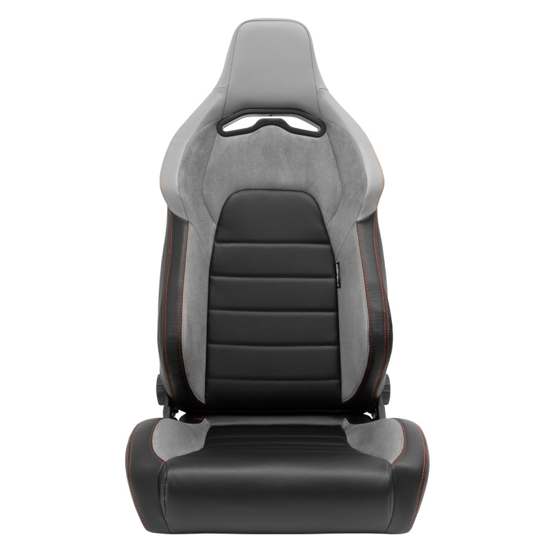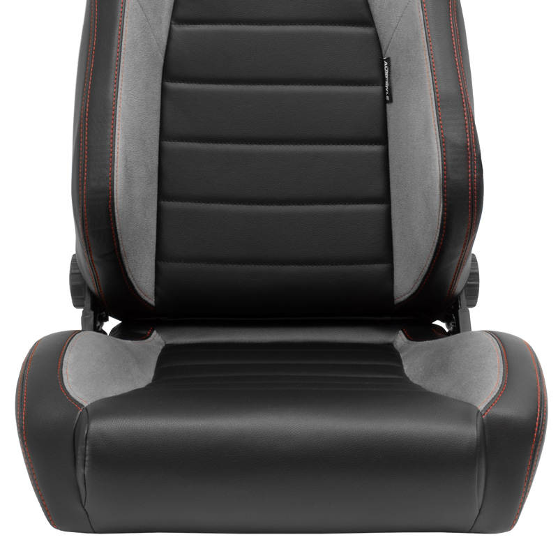 Sportstoel 'VGR' - Zwart Kunstleder + Lichtgrijs Stof/Suede + Rode stiksels - Dubbelzijdig verstelbare rugleuning - incl. sledes