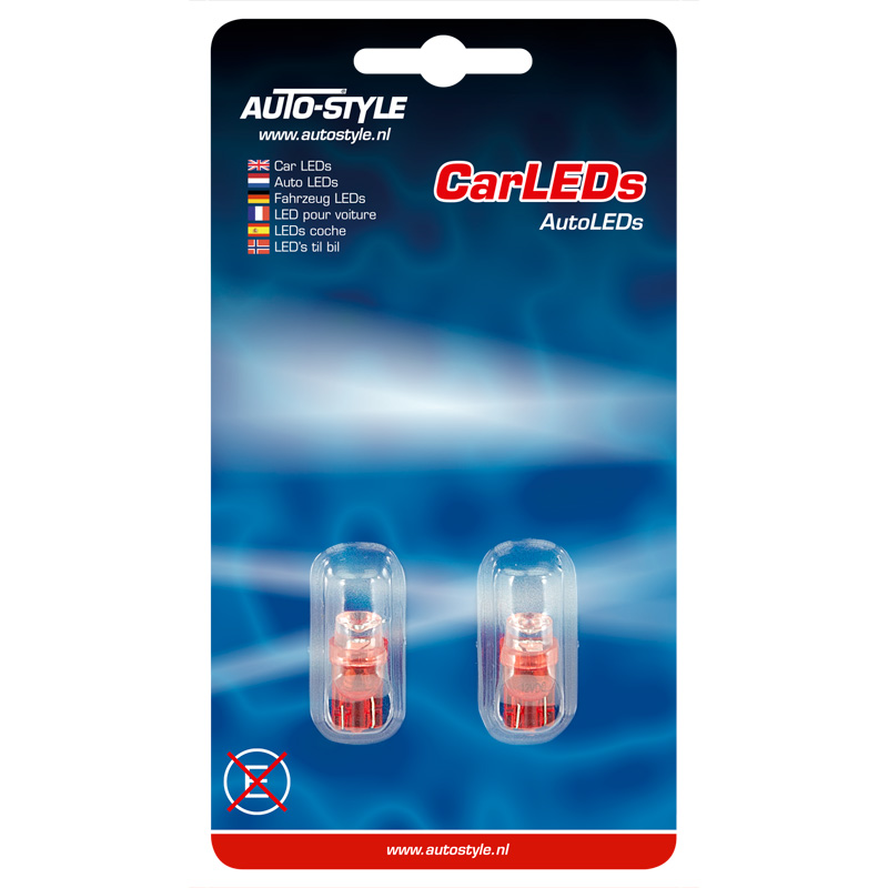 T-8 LED Lampen 12V Rood Wide-Angle, set à 2 stuks