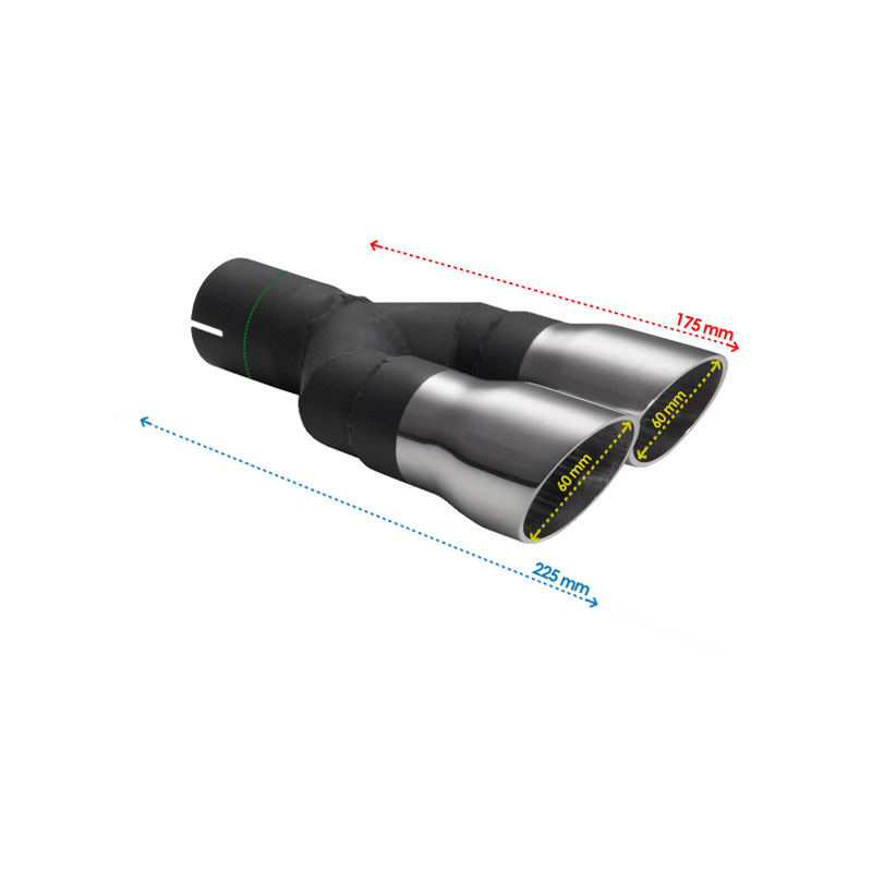 Ulter Sport Uitlaatsierstuk - Dubbel Rond Ø60mm Race - Lengte 175mm - Montage ->50mm - RVS
