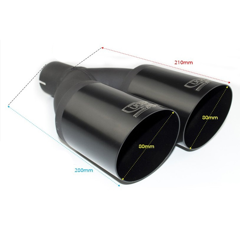 Ulter Sport Uitlaatsierstuk - Dubbel Rond Ø80mm Schuin - Lengte 280mm - Montage ->55mm - Zwart RVS