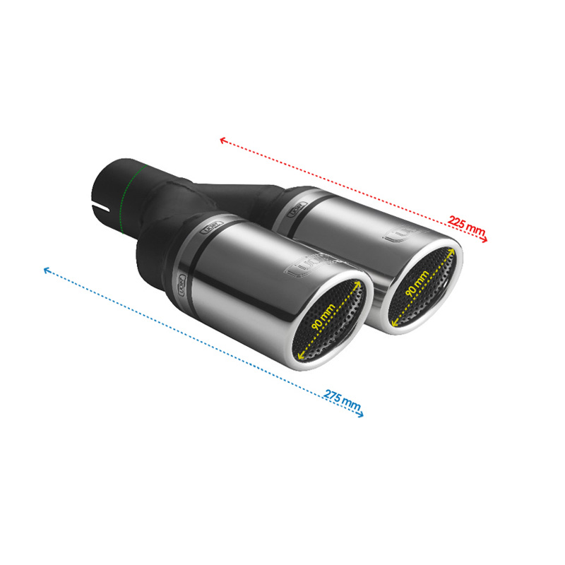 Ulter Sport Uitlaatsierstuk - Dubbel Rond Ø90mm RS - Lengte 225mm - Montage ->50mm - RVS