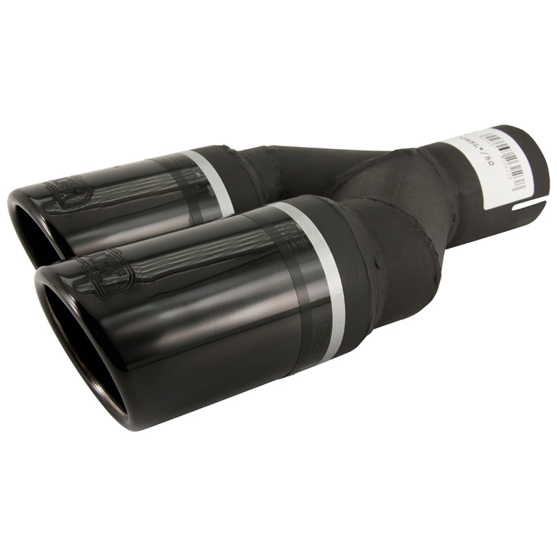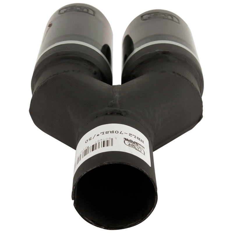 Ulter Sport Uitlaatsierstuk (links) - Dubbel Rond Ø70mm - Lengte 200/180mm - Montage ->50mm - RVS Zwart