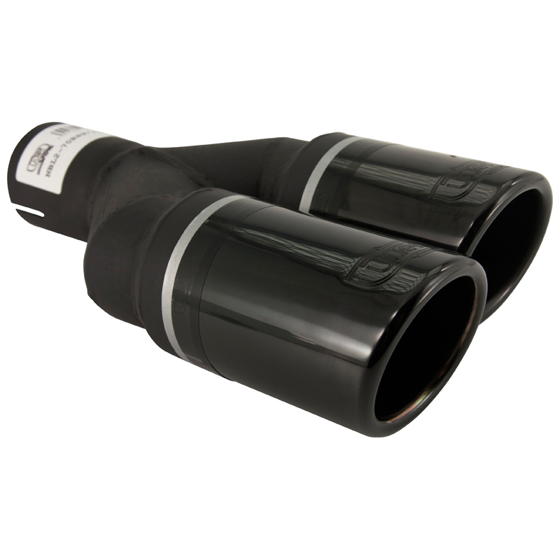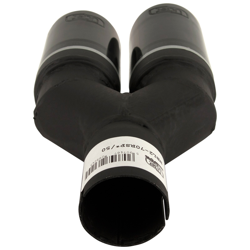 Ulter Sport Uitlaatsierstuk (rechts) - Dubbel Rond Ø70mm - Lengte 200/180mm - Montage ->50mm - RVS Zwart