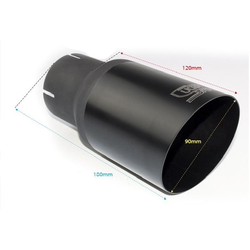 Ulter Sport Uitlaatsierstuk - Rond Ø90mm Schuin - Lengte 180mm - Montage ->55mm - Zwart RVS