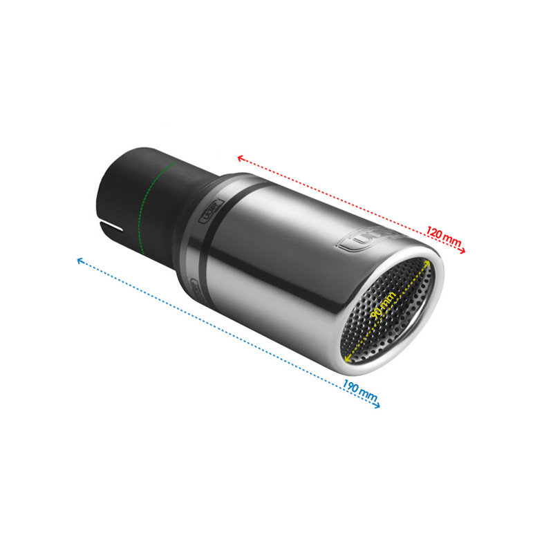 Ulter Sport Uitlaatsierstuk - Rond Ø90mm Schuin RS - Lengte 120mm - Montage ->50mm - RVS