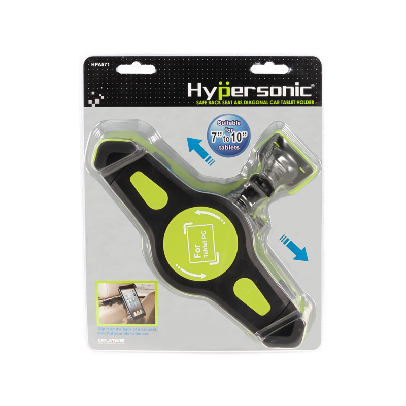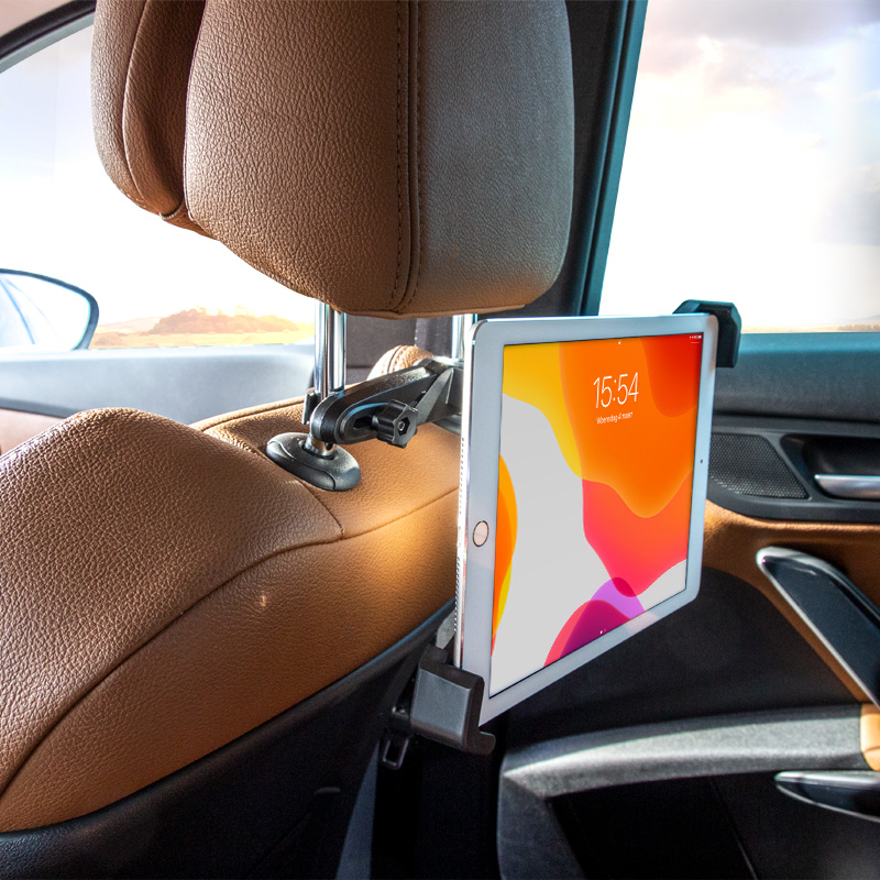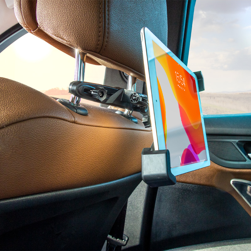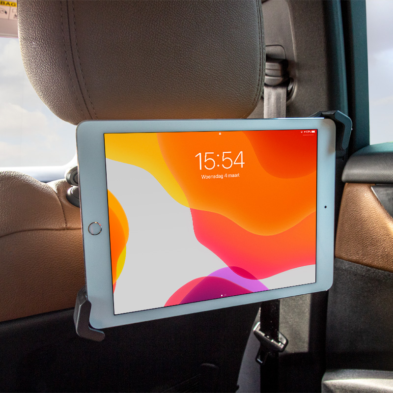 Universele tablethouder 'Diagonal' voor de hoofdsteun - Geschikt voor tablets en ipads van 7'' to max 10'' - Bevestiging aan de hoofdsteun - Zeer stabiel en draaibaar.