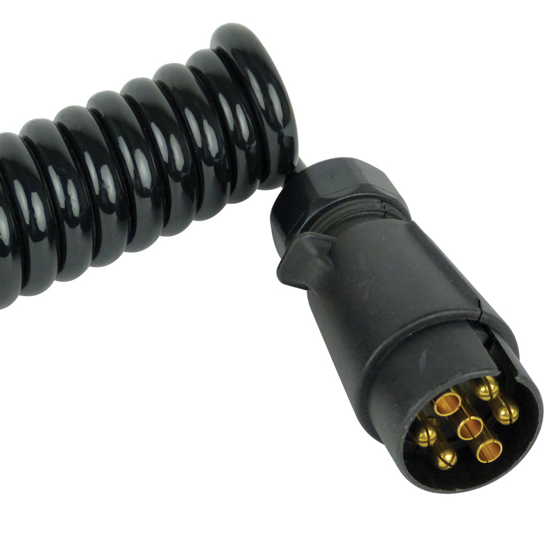 Deze verlengkabel voor trailer 7-polig is spiraalvormig en daardoor uitrekbaar tot wel 70 centimeter. De kabel van 0,75mm2 is 7-aderig. De verlengkabel voor trailer is voorzien van een mistlampaansluiting.