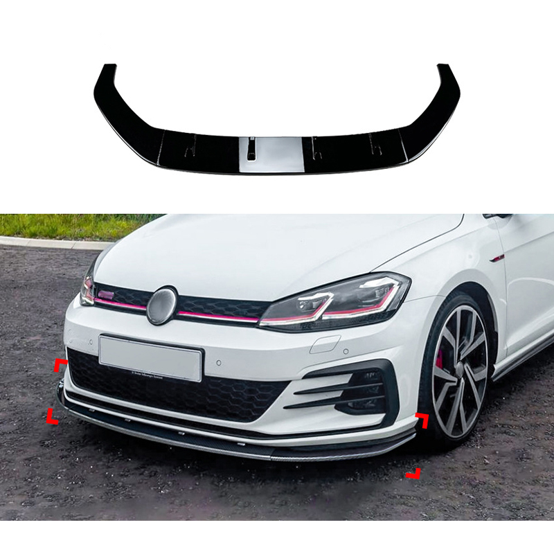 Voorspoilerlip passend voor Volkswagen Golf VII (7.5) GTi/GTD/R/R-Line 2017-2019 (Glanzend Zwart ABS) - 3-Delige voorspoiler - Hoogwaardig ABS - Glanzend zwart, dus behoeft niet in kleur gespoten te worden