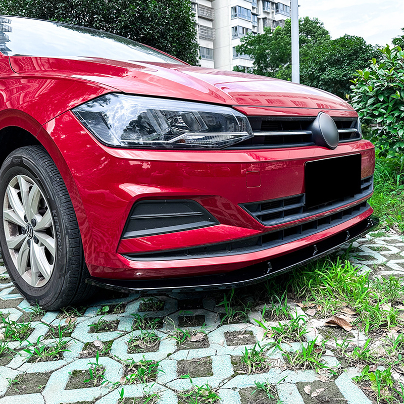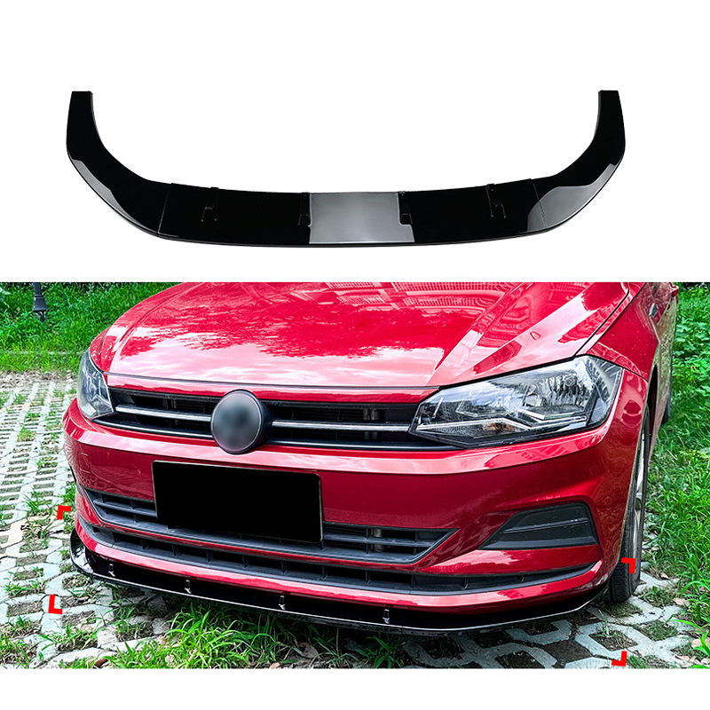 Voorspoilerlip passend voor Volkswagen Polo (AW) 2017- excl. R-Line/GTi (Glanzend Zwart ABS) - 3-Delige voorspoiler - Hoogwaardig ABS - Glanzend zwart, dus behoeft niet in kleur gespoten te worden