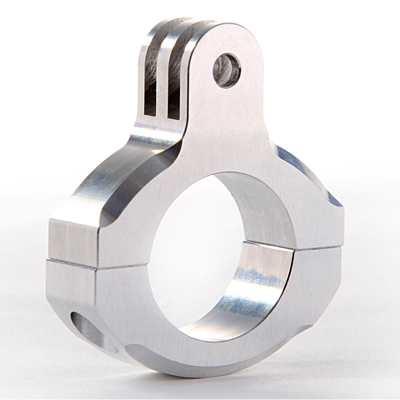 Een titanium geanodiseerde aluminium montage klem die zonder speling op 1-inch buizen past.