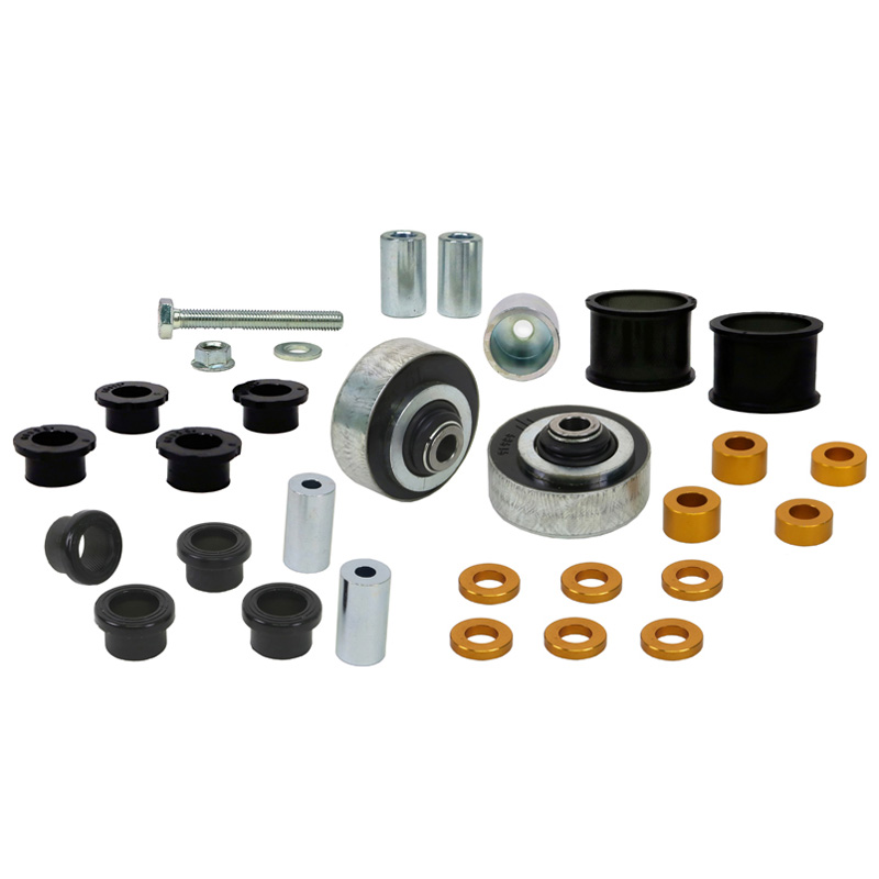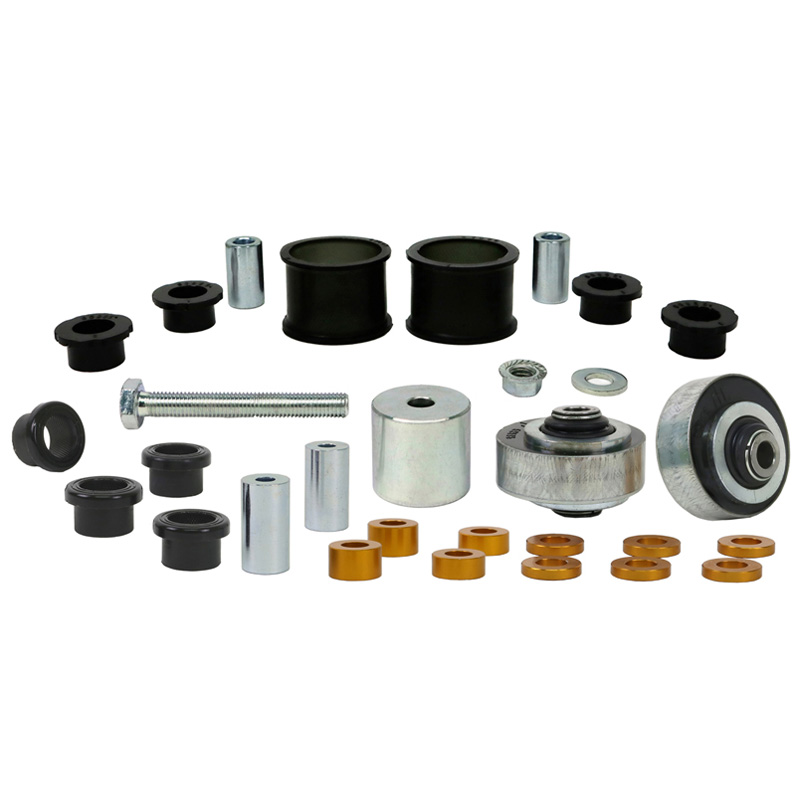 Door de belangrijkste bushings uitlijning en geometrieproducten in één oplossing te combineren, bieden Whiteline Essential Kits waar voor uw geld bij het verwerken van upgrades die eenvoudig meer grip activeren. Essentiële zaken zijn onder meer de beroemde anti-lift / zwenkwielkit aan de voorzijde, de kit met positieve versnellingsbak, het stuurprecisie-rek en de draagarmbussen die een kart-achtige besturing en grip op een hoger niveau aan uw voertuig leveren.